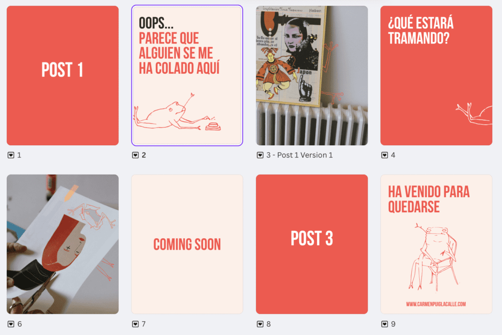 Design of a content system with different types of posts (artworks, processes, special editions, etc.), including visual creativity and copywriting.